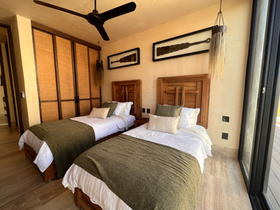 Segunda recámara con 2 camas matrimoniales, terraza y baño completo